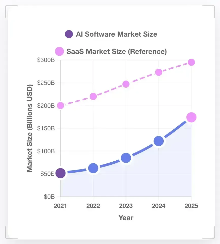 Global AI software spending is expected to cross $600 billion by 2026, growing nearly 2× faster than traditional SaaS markets, which are projected to grow at low double-digit rates.
