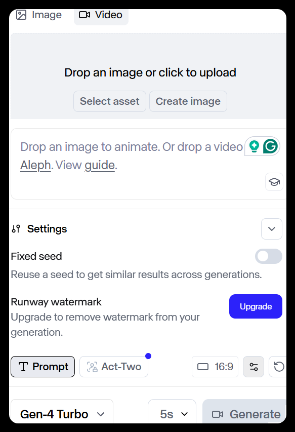 - Act-Two (Runway’s story structure tool for more advanced, guided generation)
